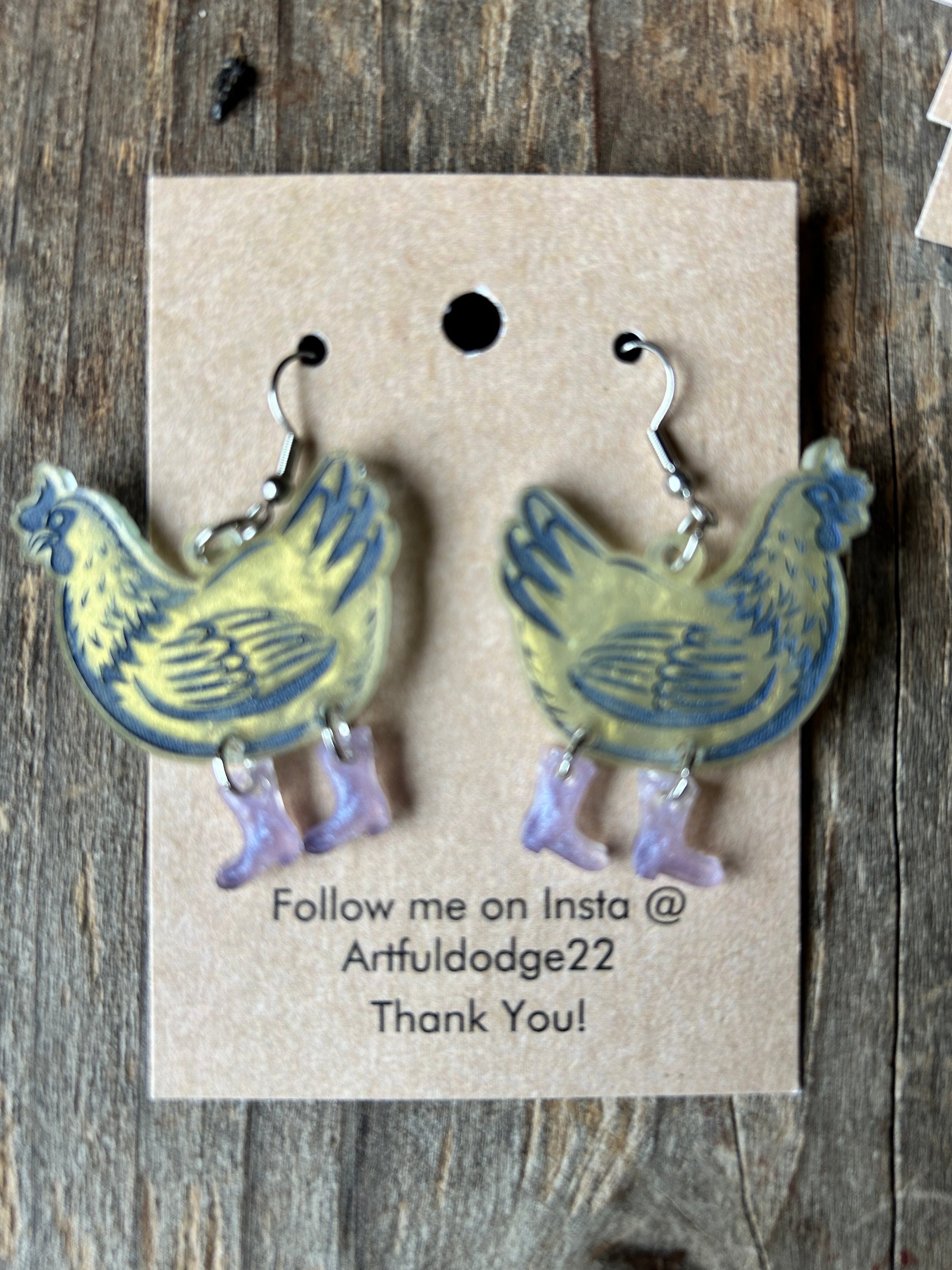 Lt yellow with dusty blue outline lavender boots lightweight resin sterling silver hardware